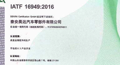 泰安昊達(dá)汽車零部件有限公司位于新泰市經(jīng)濟(jì)開發(fā)區(qū)嶅山路7號(hào),公司成立于2011年,是一家生產(chǎn)中、重型卡車底盤鑄鍛件、焊接件、發(fā)動(dòng)機(jī)配件的專業(yè)廠家,廠區(qū)占地面積101畝,2018年建設(shè)年產(chǎn)300萬件汽車零部件項(xiàng)目,項(xiàng)目總投資3.16億元,總建筑面積3.6萬平方米,是新泰市汽車裝配產(chǎn)業(yè)鏈的重點(diǎn)項(xiàng)目、2018年、2019年泰安重點(diǎn)項(xiàng)目,現(xiàn)已建設(shè)完畢,于2019年1月1日正式投入使用,設(shè)備新上覆膜砂自動(dòng)化鑄造生產(chǎn)線1條、熱模鍛生產(chǎn)線6條、自動(dòng)化焊接生產(chǎn)線10條、CNC加工設(shè)備200余臺(tái)套。 主要產(chǎn)品:中、重卡車底盤配件、轉(zhuǎn)向配件、中后橋氣室支架總成、中后橋配件、前橋轉(zhuǎn)向節(jié)臂、焊接配件、發(fā)動(dòng)機(jī)配件。產(chǎn)品主要銷往中國重汽集團(tuán)、市場(chǎng)份額約50%,位居行業(yè)鑄件產(chǎn)品前三。 公司擁有IATF16949:2016國際標(biāo)準(zhǔn)質(zhì)量管理體系認(rèn)證,擁有實(shí) ......